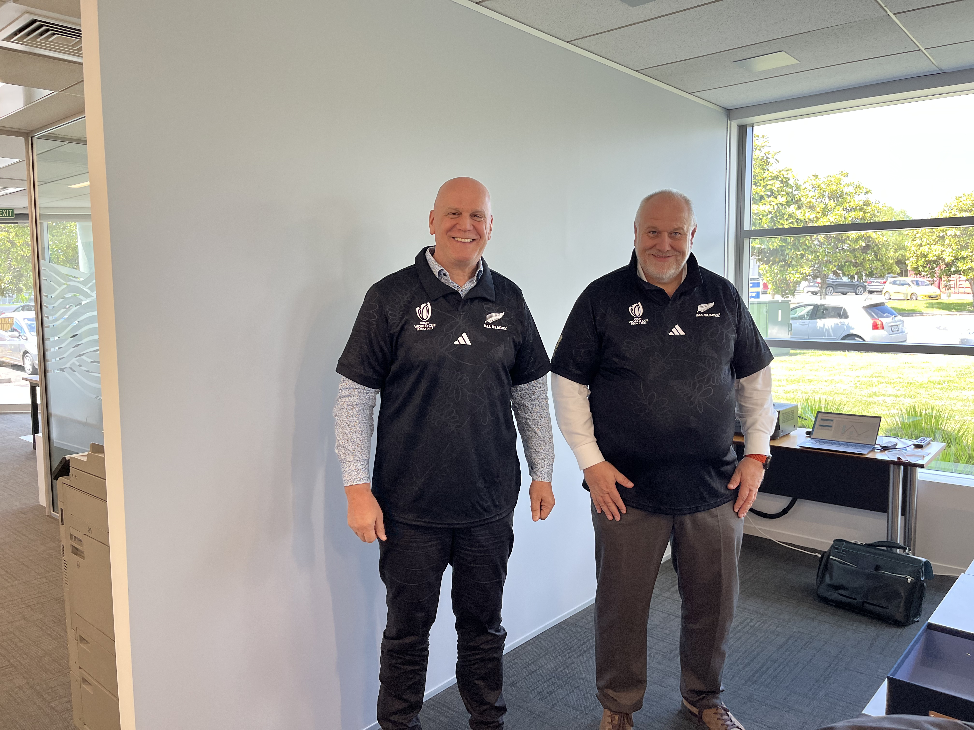 - Rolf Leber and Matthias Altendorf receive personalised official All Blacks jerseys as a gift from EMC.